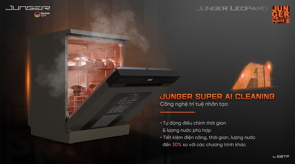 Máy rửa bát Junger JG Leopard DWJ-163-MS – Đỉnh cao công nghệ AI, sạch khô tuyệt đối chuẩn Đức