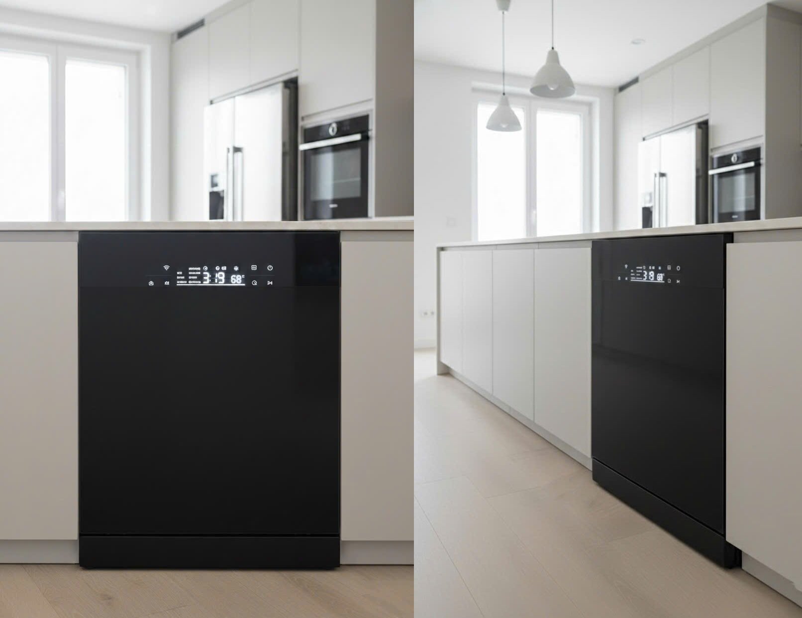 • Mặt kính Full viền: Thiết kế kính đen cường lực bao phủ toàn bộ cửa trước, tạo vẻ ngoài mượt mà và dễ vệ sinh.