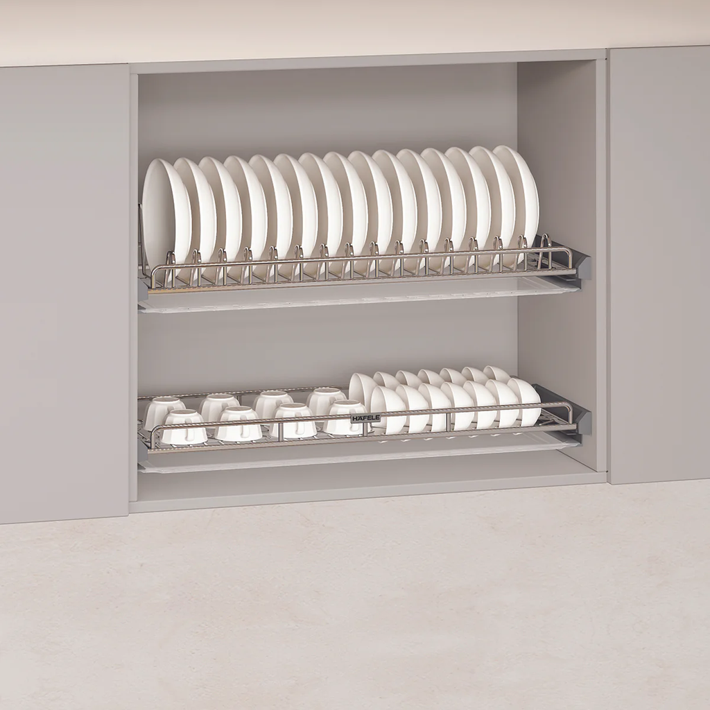 Vị trí: Phù hợp lắp đặt tại khoang tủ trên chậu rửa để thuận tiện cho việc sắp xếp bát đĩa hàng ngày.