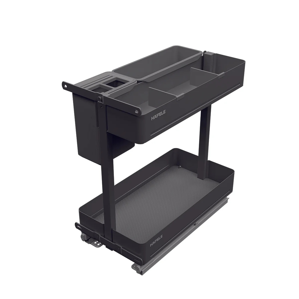 Hafele Utensio Plus H2 545.14.301 không chỉ là một chiếc kệ gia vị thông thường, mà là một hệ thống lưu trữ đa năng thông minh bậc nhất hiện nay. Với sự kết hợp giữa vật liệu thép sơn tĩnh điện màu Than chì và các khay nhựa linh hoạt, sản phẩm biến khoang tủ 300mm thành một "trung tâm điều phối" gia vị gọn gàng và đầy cảm hứng cho bà chủ.