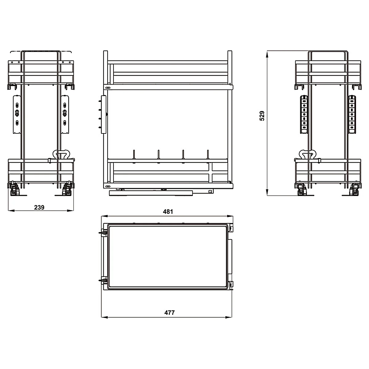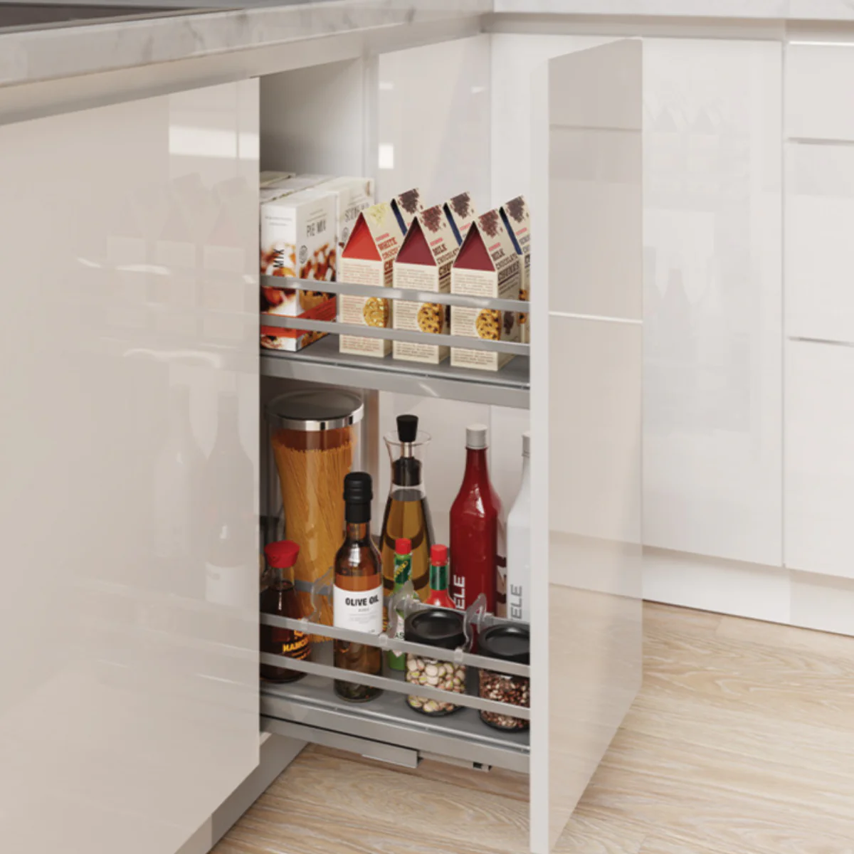 Phù hợp: Khoang tủ bếp dưới 400mm, gia đình cần lưu trữ lượng lớn gia vị và chai lọ thực phẩm.