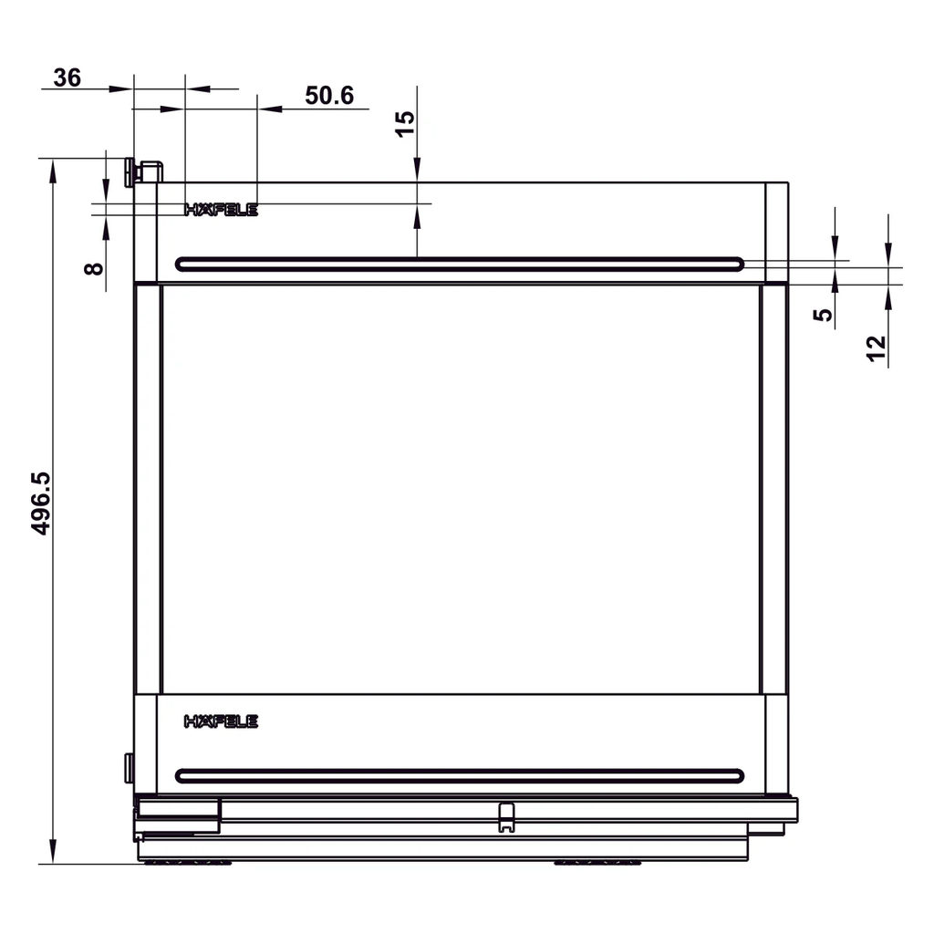 Kích thước lòng tủ: Khoang tủ cần đạt chiều rộng lọt lòng chính xác 362mm và chiều sâu tối thiểu 500mm để hệ khung kéo thu hồi toàn bộ vào bên trong.