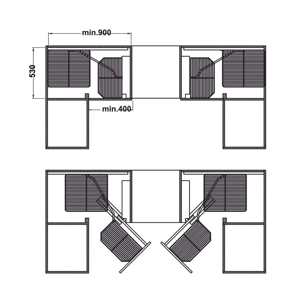 Kích thước hộc tủ: Phù hợp với tủ có chiều rộng 900 mm và chiều cao lọt lòng tối thiểu 600 mm để hệ thống khung xoay hoạt động trơn tru nhất thưa bà chủ.