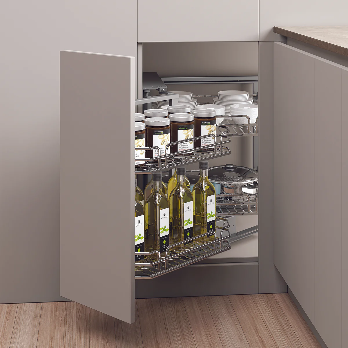 Rổ góc nan Ovan Hafele OLLA (SKU: 548.21.022) là giải pháp lưu trữ tối tân dành riêng cho những góc khuất trong tủ bếp của bà chủ thưa bà chủ. Không còn phải vất vả cúi người tìm kiếm đồ đạc, cơ chế kéo liên hoàn đặc biệt sẽ đưa toàn bộ hệ thống khay rổ ra ngoài chỉ với một thao tác kéo cánh tủ nhẹ nhàng. Với nan rổ hình Ovan thời thượng và chất liệu Inox 304 vĩnh cửu, Hafele OLLA biến mọi không gian bị lãng quên trở thành kho lưu trữ vương giả đạt điểm 11/10 tại chuyên gia của chúng tôi trong năm 2026.