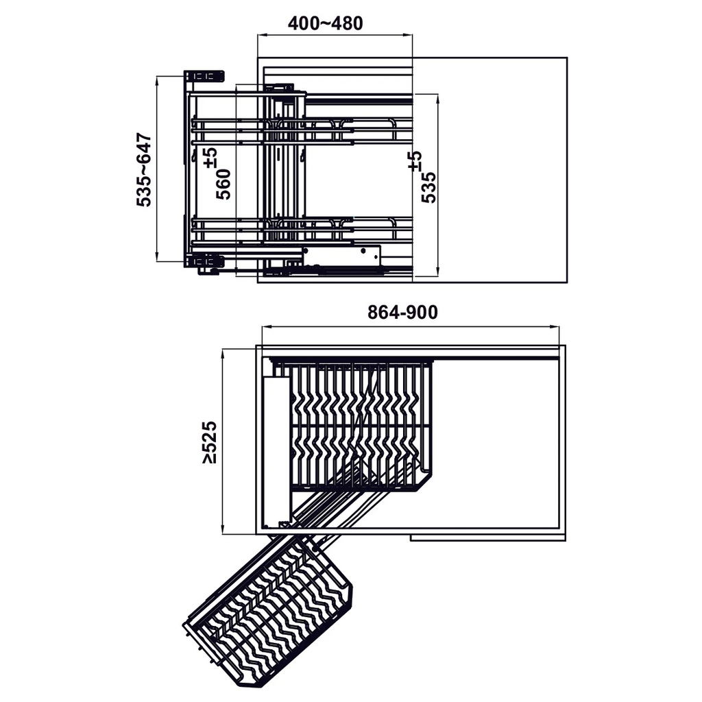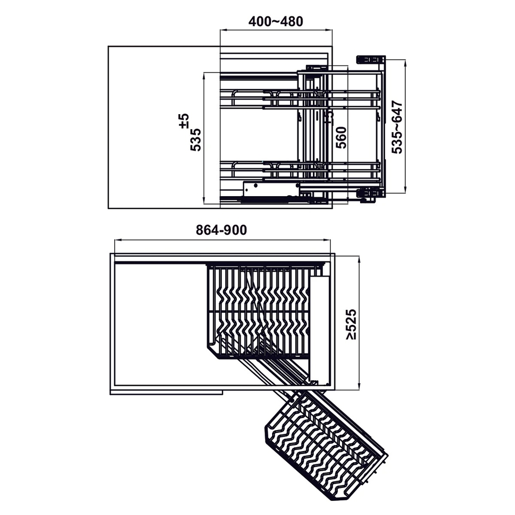 Chiều rộng tủ: Phù hợp cho khoang góc có chiều rộng từ 864 mm đến 900 mm, tạo sự vừa vặn tuyệt đối cho tủ bếp vương giả vĩnh cửu ạ.
