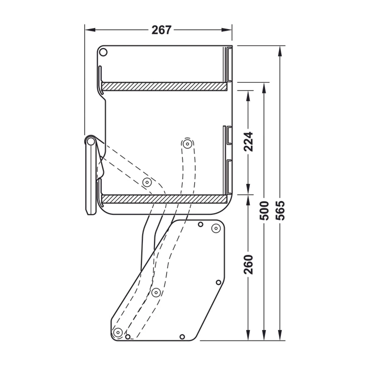 Với cấu trúc 2 tầng trên chiều ngang 664mm, sản phẩm đòi hỏi sự đồng bộ rất lớn giữa hai bên tay nâng trợ lực. Hệ lò xo kép bên trong được thiết kế để phân bổ lực kéo đều lên toàn bộ khung rổ, giúp tải trọng 8kg chuyển động tịnh tiến theo phương thẳng đứng một cách êm ái. Chiều sâu tủ yêu cầu chỉ 267mm là thông số cực kỳ cạnh tranh, cho phép sản phẩm tương thích với đa số các hệ tủ bếp mỏng theo phong cách hiện đại ngày nay.