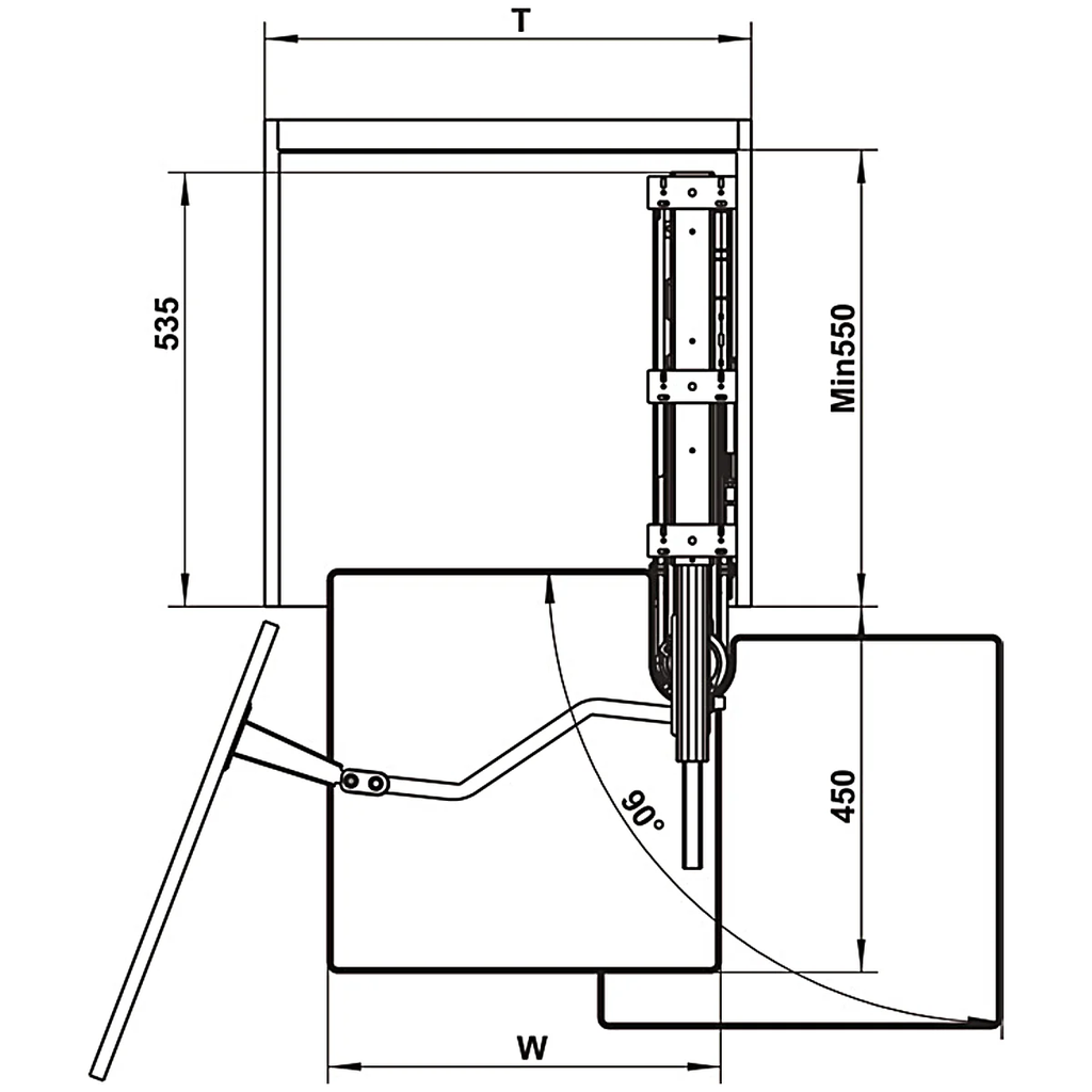 Mã 595.82.815 được thiết kế với khung trục có thể co giãn từ 2020mm đến 2320mm. Đây là kích thước chuyên dụng cho các dòng tủ bếp cao kịch trần, giúp tận dụng tối đa những khoảng không gian thường bị bỏ phí trên cao.