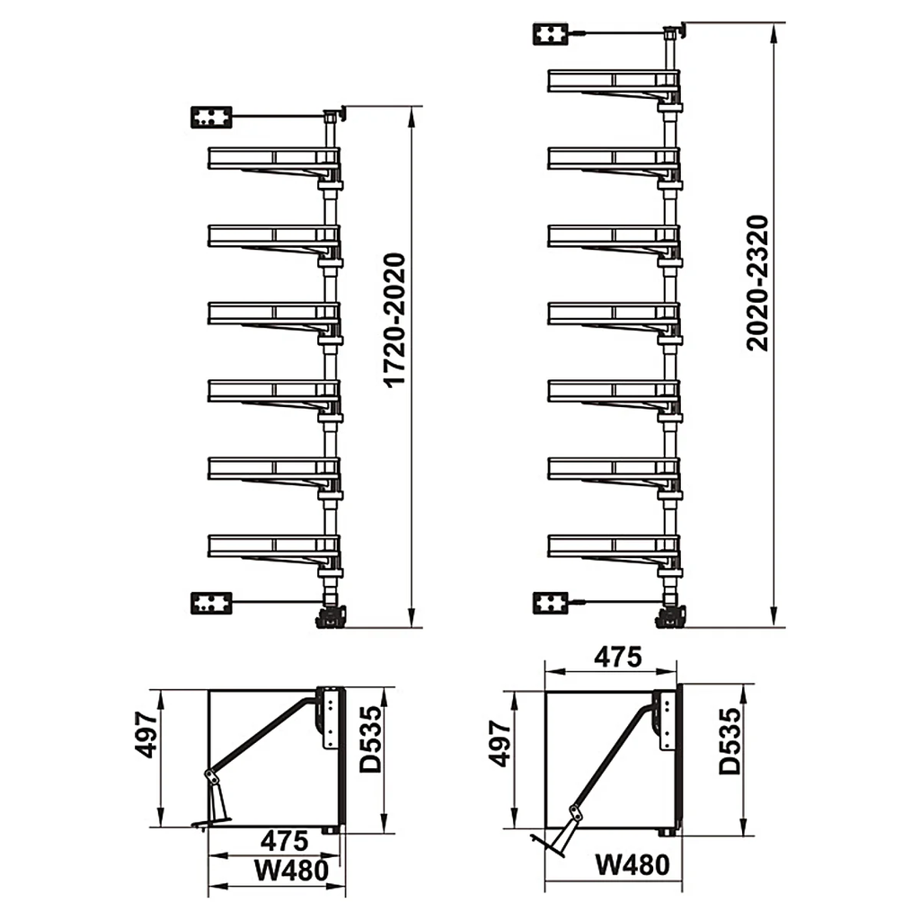 | Kích thước sản phẩm (RxSxC) | 480 x 535 x (2020 - 2320) mm |