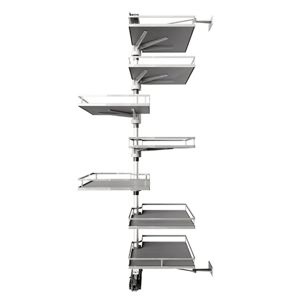 Trong các thiết kế bếp chữ L hoặc chữ U, góc tủ luôn là nơi khó sắp xếp đồ dùng nhất. KARA VARIO xuất hiện như một giải pháp cứu cánh. Với lớp hoàn thiện sơn phủ Nano màu sắc hiện đại, sản phẩm không chỉ có khả năng chống oxy hóa, chống trầy xước mà còn tạo nên vẻ đẹp đồng bộ cho không gian bếp hạng sang. Hệ thống được trang bị 2 khay lưu trữ rộng rãi, mỗi khay chịu tải lên đến 10kg, cho phép bạn thoải mái đựng từ bộ nồi chảo đến các loại máy móc cầm tay nặng.