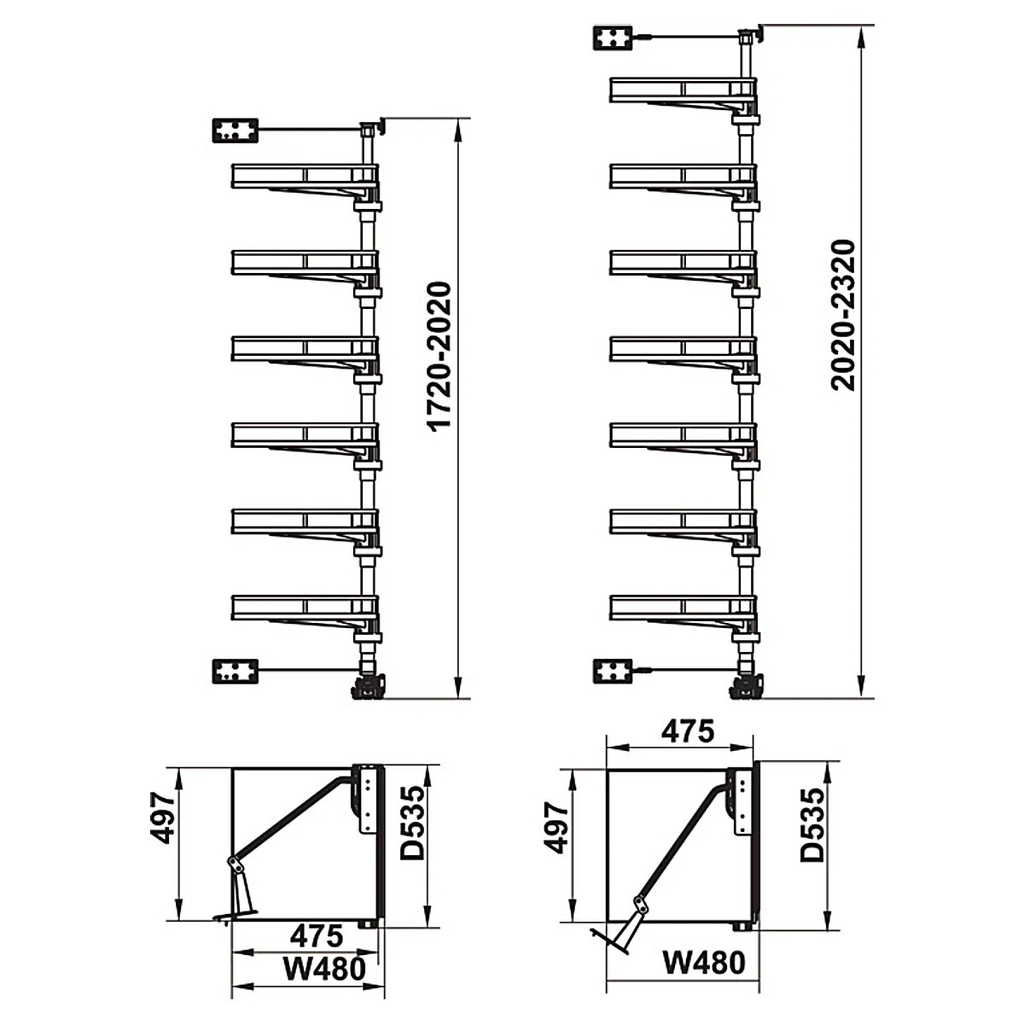 Rổ xoay KARA VARIO có lắp được cho tủ có chiều rộng nhỏ hơn 600mm không? Không, sản phẩm được thiết kế chuẩn cho module tủ 600mm để đảm bảo hành trình trượt không bị va chạm vào vách tủ.