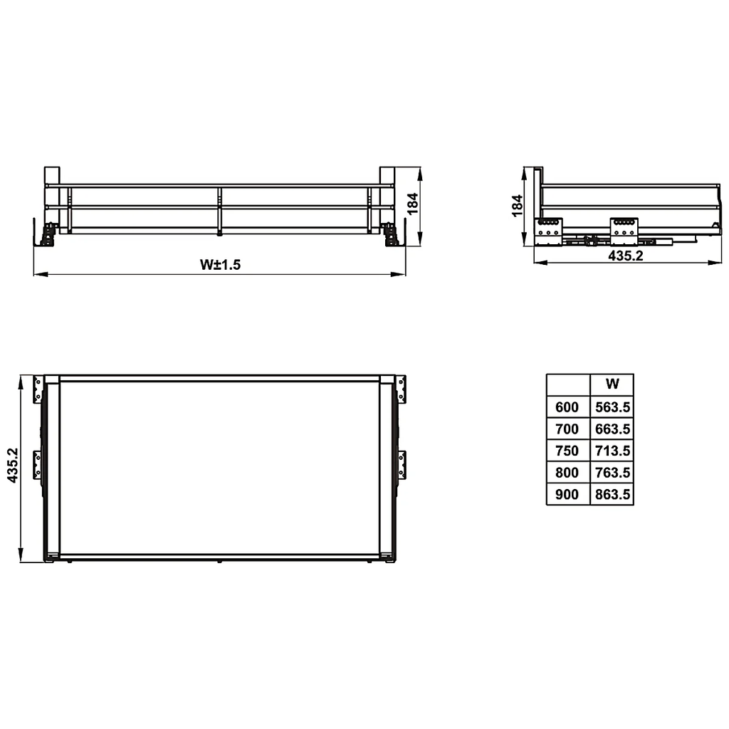 Mã 549.08.868 yêu cầu chiều rộng lọt lòng chính xác 864mm. Với hệ thống ray trượt giảm chấn lắp gài, rổ vận hành mượt mà và êm ái ngay cả khi chất đầy vật dụng nặng đến 35kg.