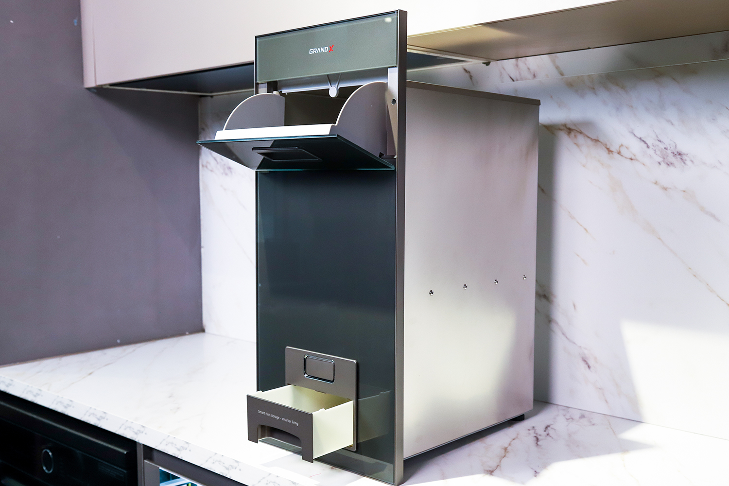 Thùng gạo GrandX XR.G302G được thiết kế dành cho những căn bếp hiện đại, nơi yếu tố thẩm mỹ và công năng được đặt lên hàng đầu. Mặt trước bằng kính cường lực màu xám tạo cảm giác sang trọng, sạch sẽ, đồng thời giúp dễ dàng lau chùi và duy trì vẻ đẹp lâu dài.