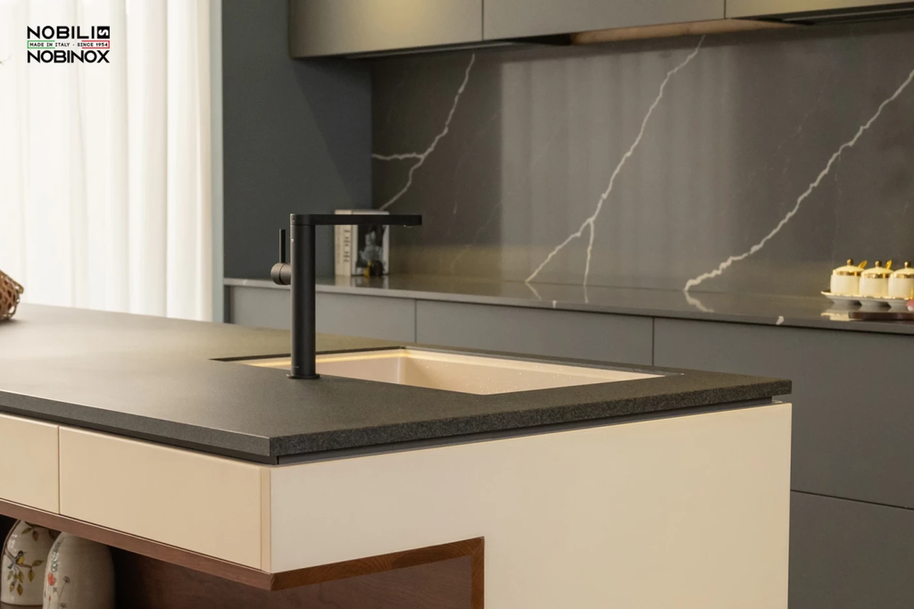 Nếu bạn đang tìm kiếm một thiết bị bếp có khả năng tạo điểm nhấn tĩnh lặng nhưng đầy quyền lực, Nobili Match NB218B (Mã Code: MH109113RJBM) chính là sự lựa chọn không thể thay thế. Nằm trong bộ sưu tập MATCH lừng danh, NB218B phá bỏ sự đơn điệu của lớp mạ Chrome truyền thống để khoác lên mình sự kết hợp giữa Velvet Black và Mora Matt – tông màu lấy cảm hứng từ sự ấm áp của cacao và chocolate, mang lại vẻ đẹp đậm chất nghệ thuật Ý cho gian bếp.